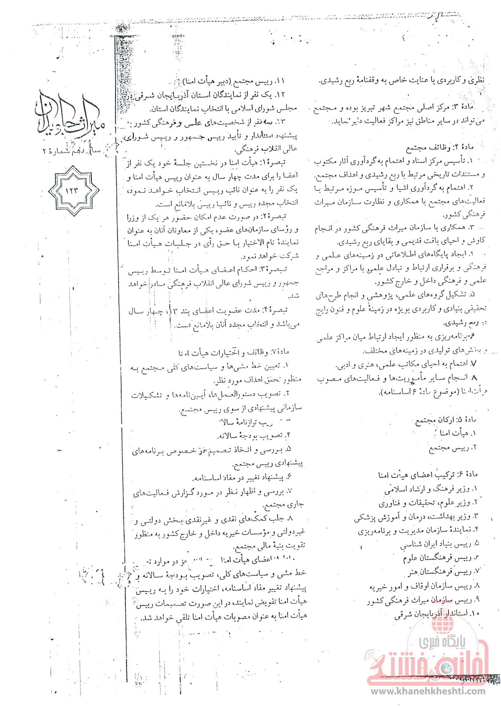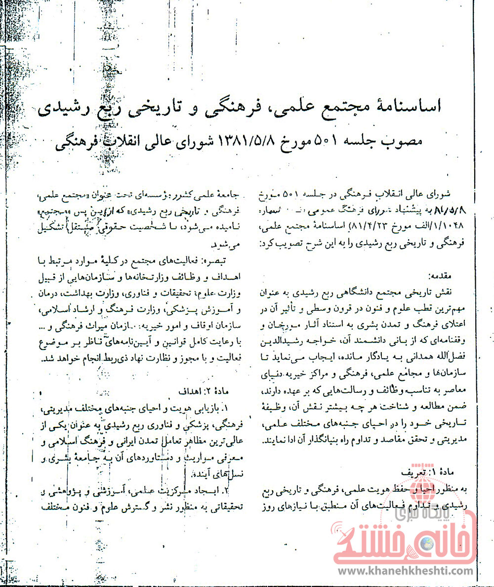 اساسنامه موقوفه ربع رشیدی مصوب شورای عالی انقلاب فرهنگی در تاریخ 8/5/1381