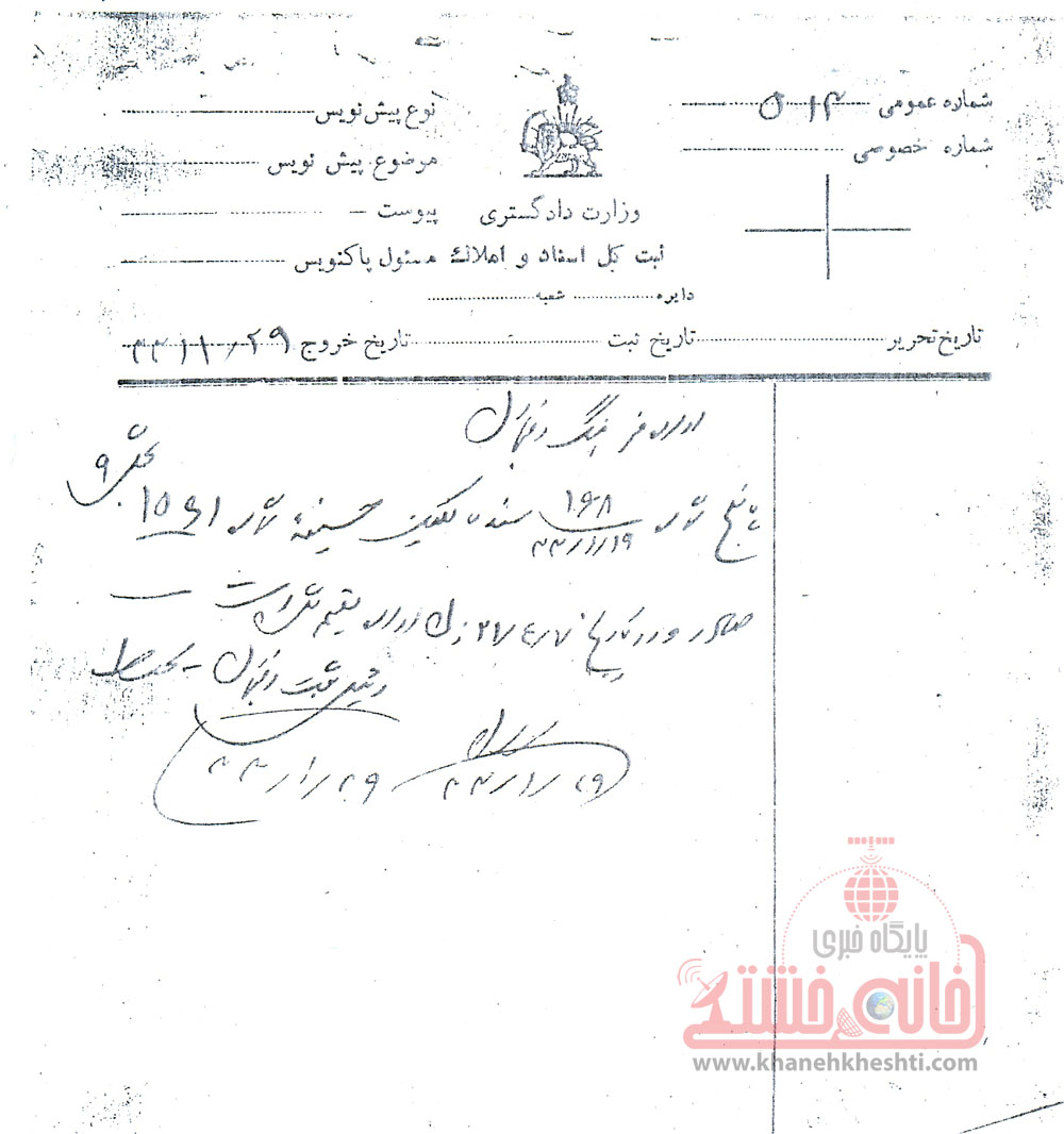 پاسخ اداره ثبت در خصوص وضعیت سند زمین حسینیه