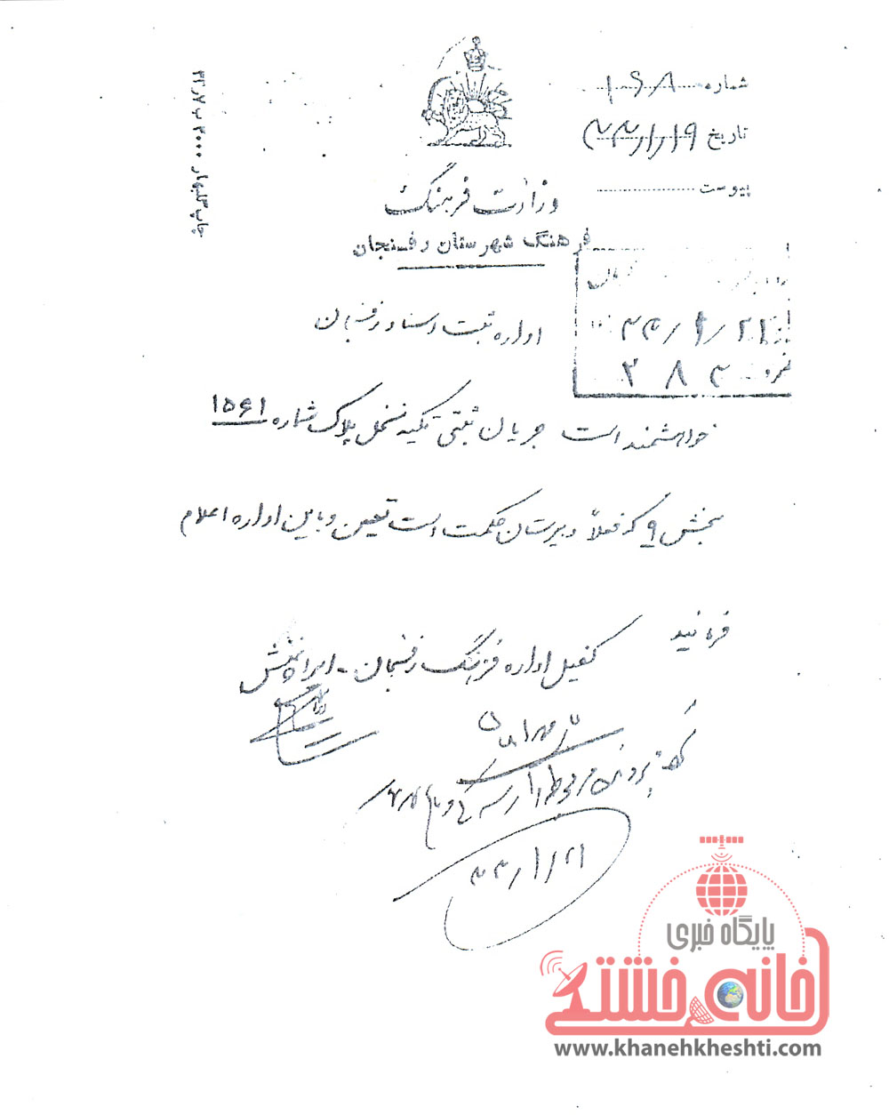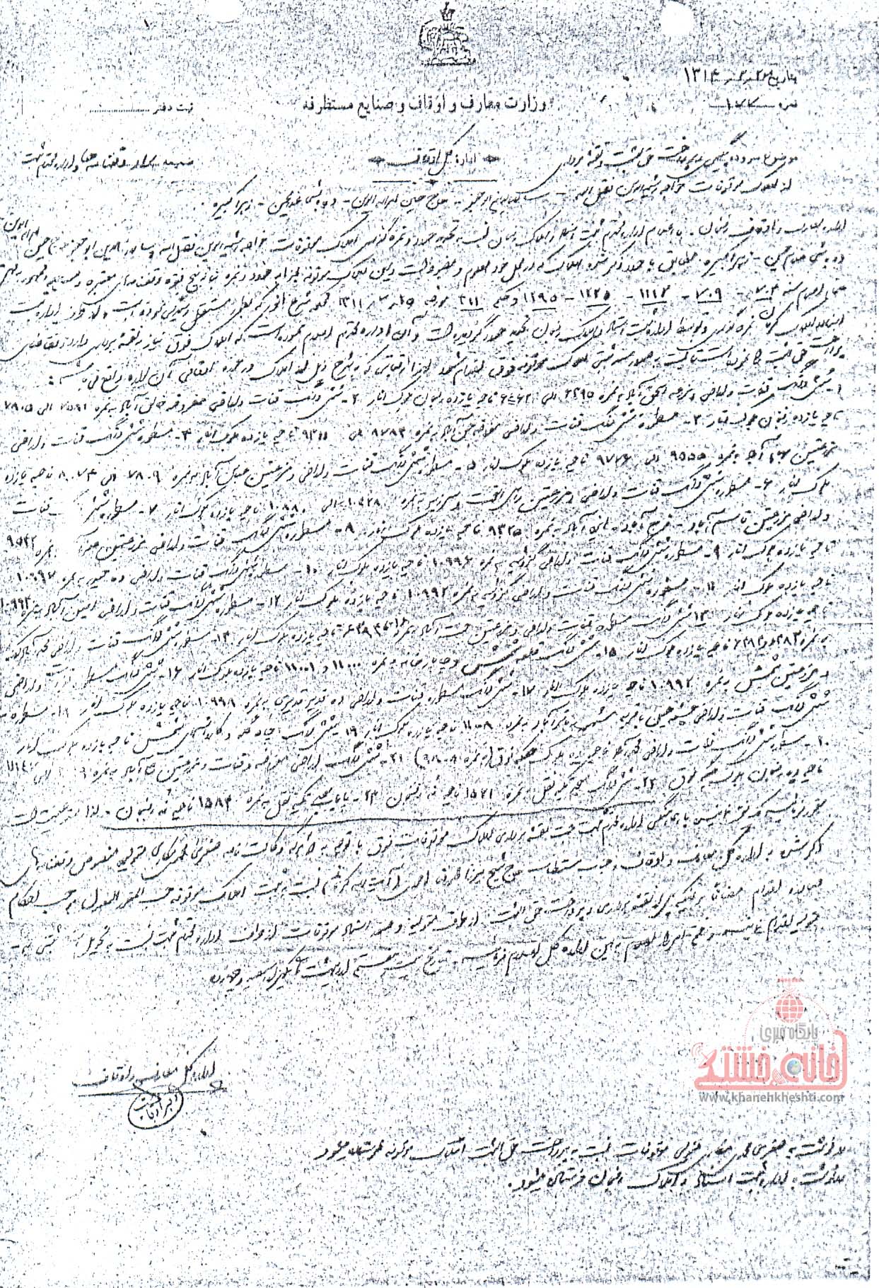 استعلام آموزش و پرورش از اداره ثبت در خصوص وضعیت سند زمین حسینیه در سال 1333